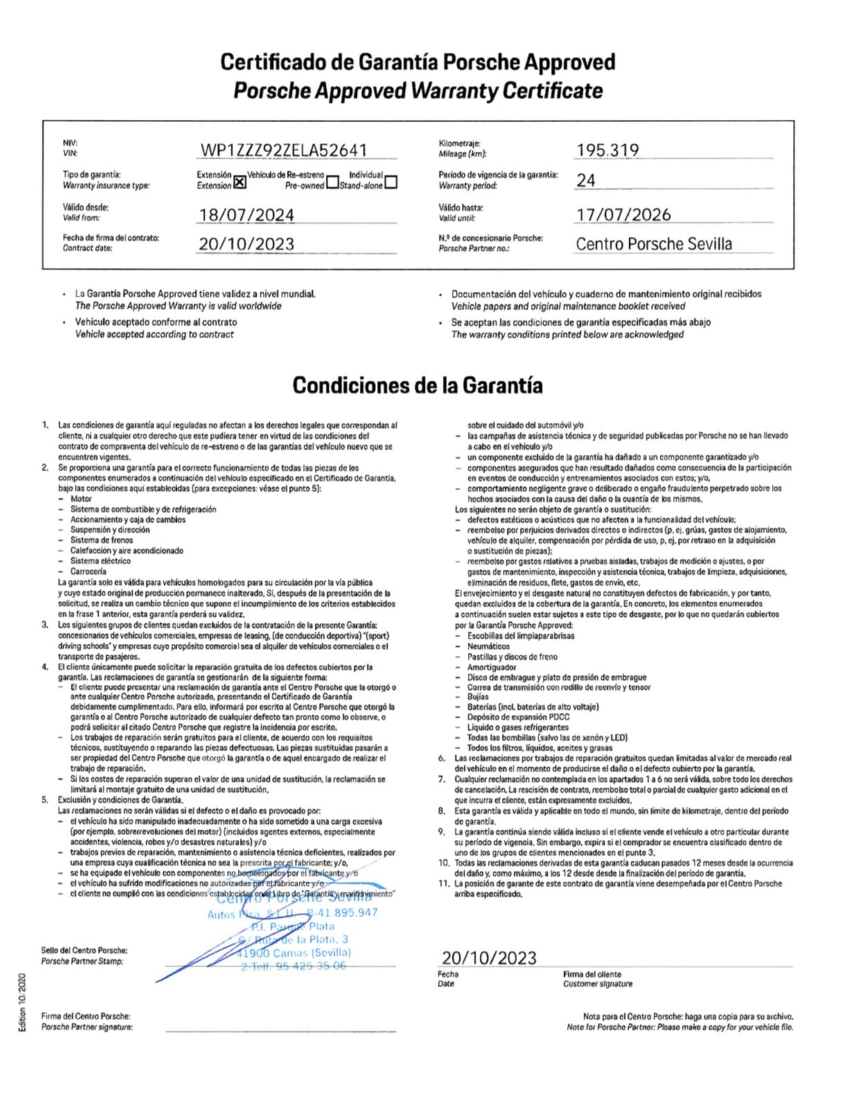 • GARANTIA PORSCHE APPROVED 111 PUNTOS